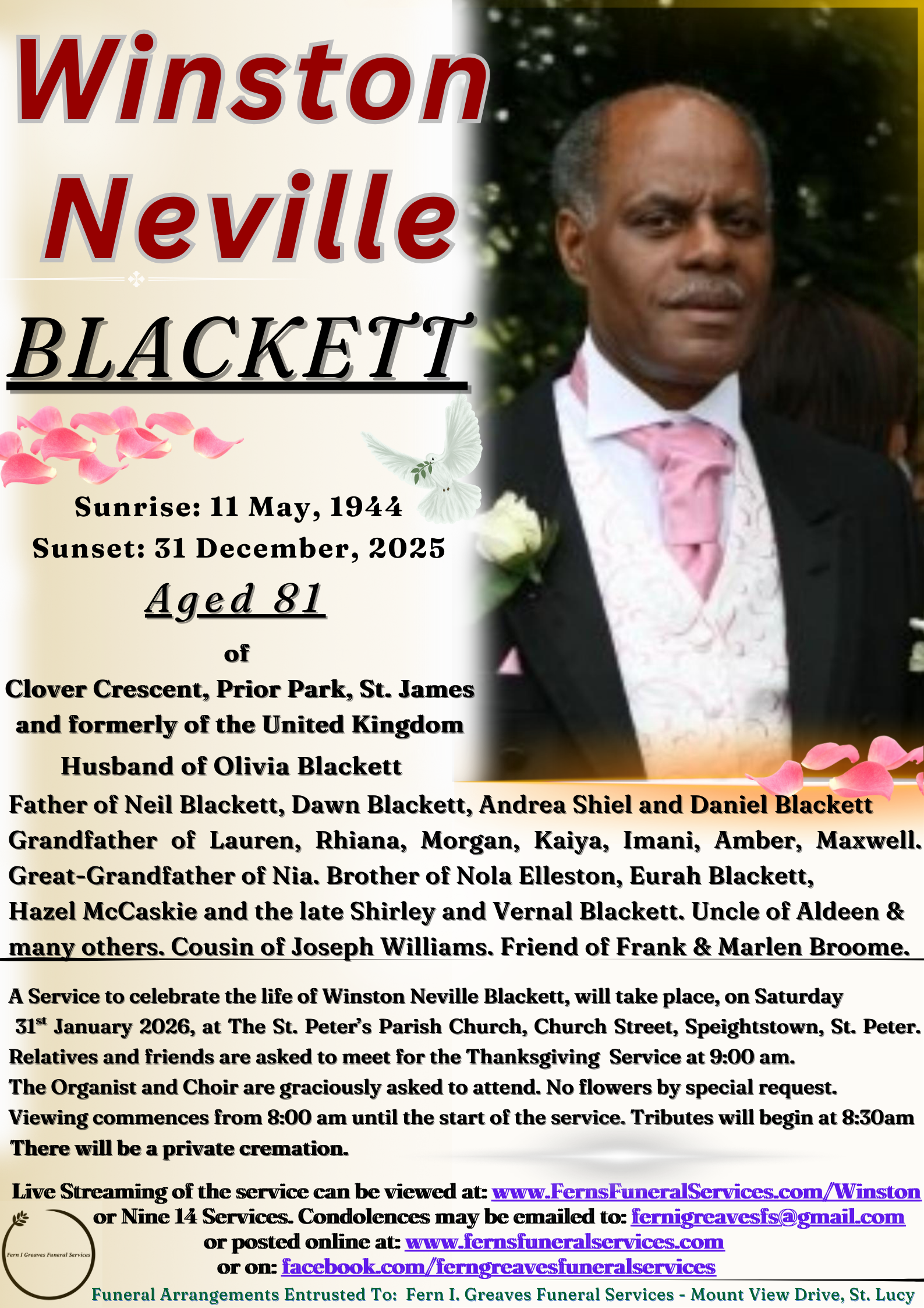 To The Family of Winston Neville Blackett