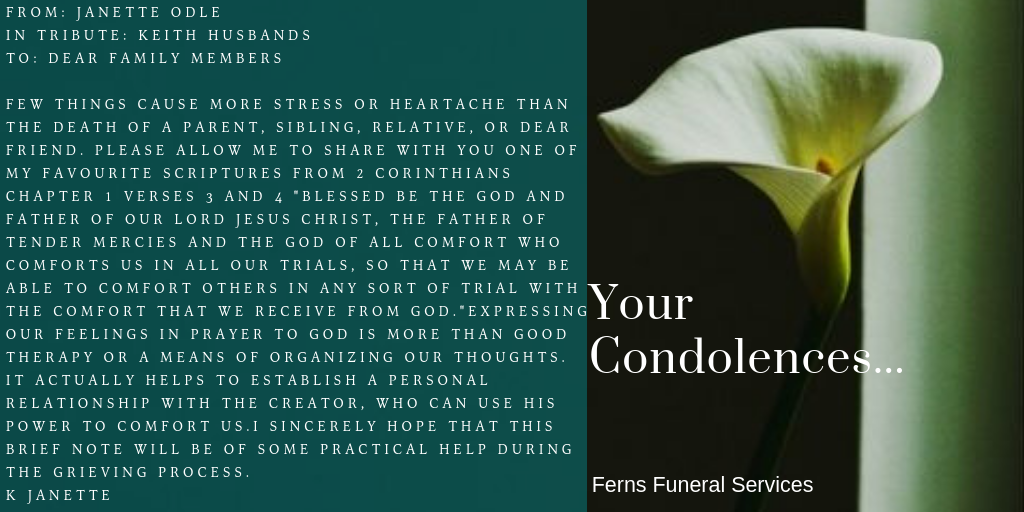 In respect of: Keith Rensford Husbands