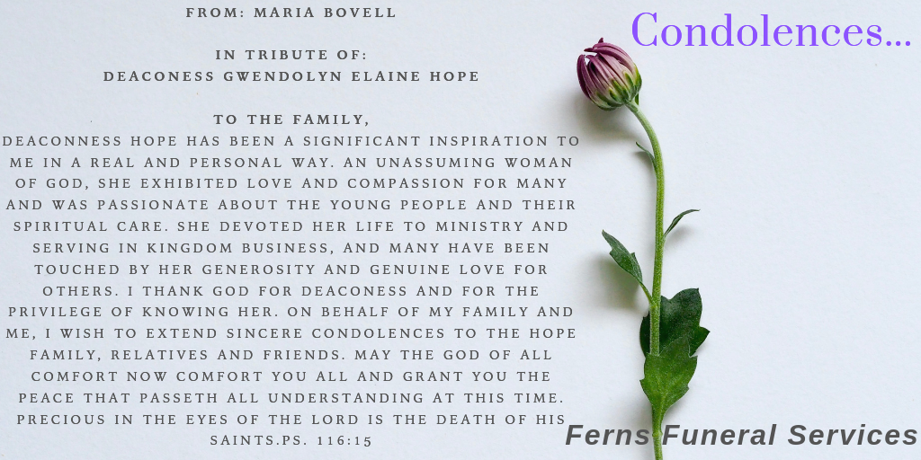 My deepest sympathy to the Sandiford family on the passing of your loved one…