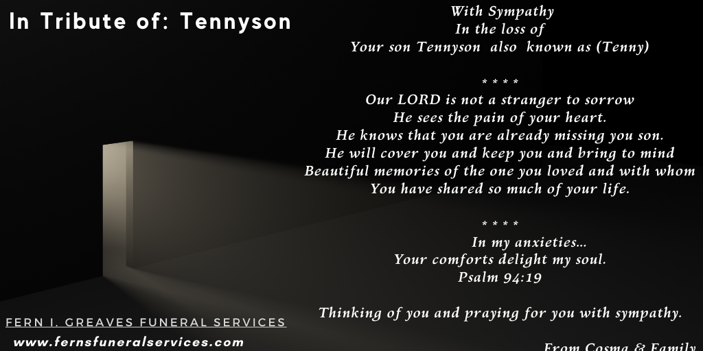 On behalf of the West Bay Seventh-day Adventist Church, I would like to extend our deepest condolences to the family and loved ones of the late Mona Patricia Greaves. At our church over here in the Cayman Islands we have the privilege of enjoying the company and very dear friendship of Shelly-Anne and Harry Cupid, and as such we share in your grief at this time. In times like these we are reminded of Christ’s words in Matthew 5:4, “Blessed are those who mourn, for they will be comforted.” May you find hope even in the midst of the searing pain of loss through trusting in God’s promise of resurrection. It is our prayer that God will give you strength from above and peace that passes all understanding.